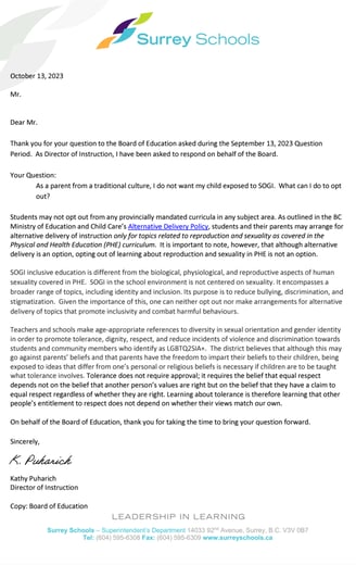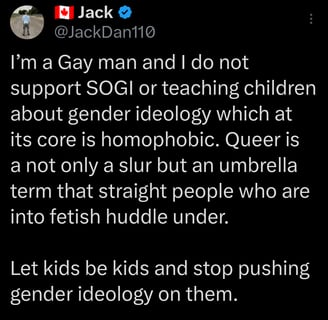 It's encouraging to find more politicians who share these views and recognize the need for a reevaluation of SOGI123 in the BC education system.